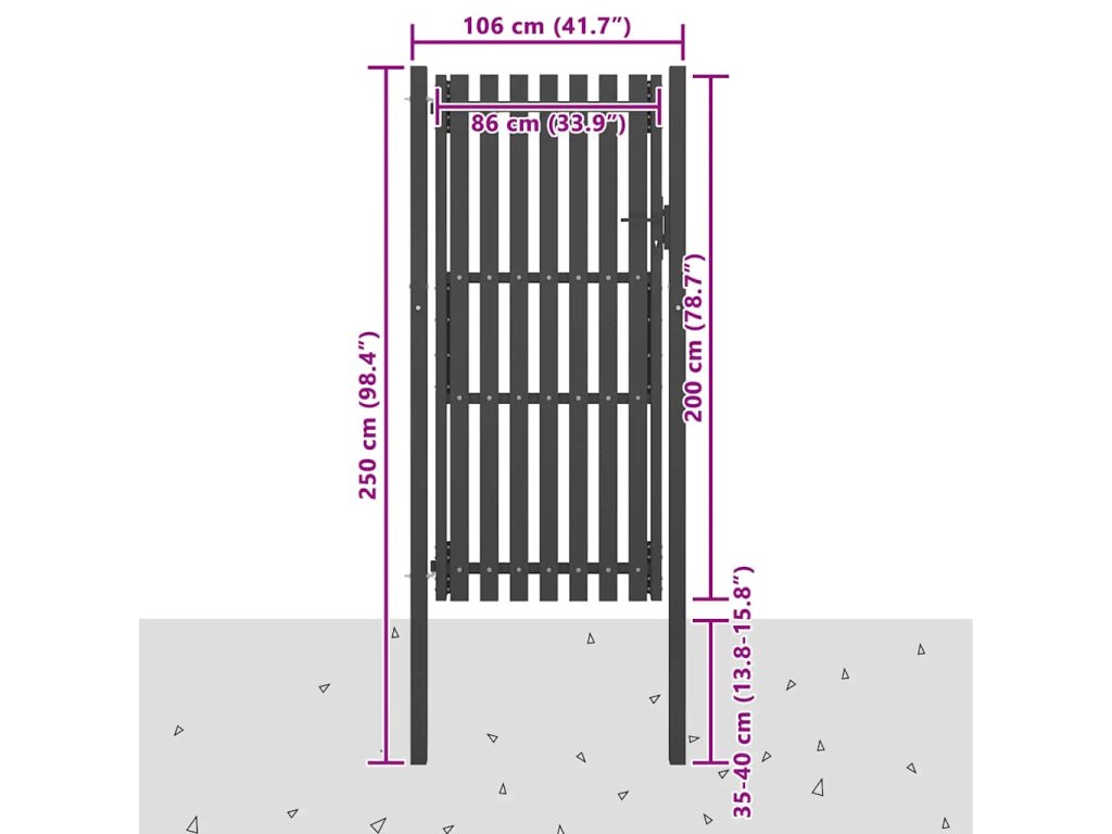 Táto záhradná brána poslúži ako moderný, štýlový a praktický vstup k oploteniu záhrady, ktoré oddeľuje váš pozemok od okolitého sveta. Brána je skutočne stabilná a trvácna, a tak pomocou nej vytvoríte praktickú bezpečnostnú bariéru, ktorá ohraničí vašu záhradu, dvor či terasu.
