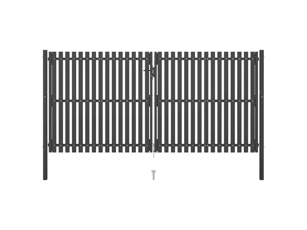 Záhradná brána so spevneným rámom z plochých trúbok poskytuje optimálnu bezpečnosť a súkromie, a zároveň vytvára pôsobivý vstup na pozemok. V strednej časti sa nachádza kotviaci kolík pre väčšiu stabilitu. Brána je vyrobená z odolnej ocele, ktorá je ošetrená práškovou povrchovou úpravou, aby odolávala hrdzi a korózii. Plotová brána je vybavená uzamykacím systémom a dodáva sa spolu s dvoma pevnými stĺpikmi a pántmi pre jednoduchú inštaláciu.