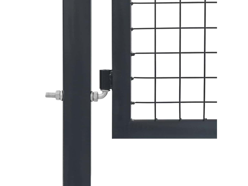 Táto robustná a trvácna záhradná brána je vyrobená z pevnej ocele s práškovou povrchovou úpravou. Odoláva hrdzi a korózii, a tak je vhodná na dlhodobé používanie v exteriéri. Záhradná brána je tvorená hrubými zváranými drôtmi, ktoré jej dodávajú mimoriadnu pevnosť, vďaka čomu poskytuje optimálnu bezpečnosť a súkromie a zároveň vytvára pôsobivý vstup na pozemok.