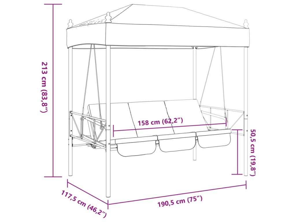 - Stabilný a dlhotrvajúci: Konštrukcia hojdacej lavičky je vyrobená z oceľového rámu s práškovou povrchovou úpravou, ktorý je odolný voči korózii a má dlhú životnosť.