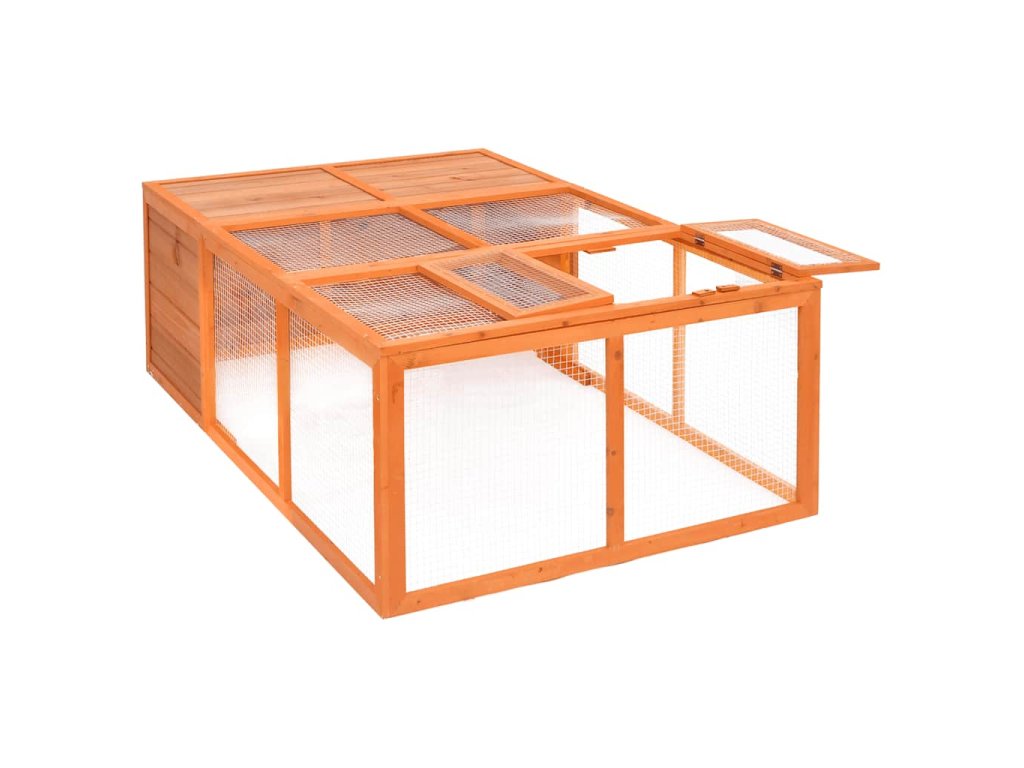 Záhradná klietka pre zvieratá má kvalitné prevedenie s oceľovou mriežkou, ktorá vám umožní dozerať na hydinu a zabráni nečakaným nehodám. Je vyrobená z masívneho jedľového dreva, vďaka čomu je odolná, stabilná a vhodná do vonkajšieho prostredia. Táto klietka pre kurčatá má tiež ľahko otvárateľné dvierka, aby ste mohli nakŕmiť svojich domácich miláčikov. Toto je špičková klietka, ktorá bude vhodná pre vaše domáce zvieratá a bude vyzerať skvele na vašom dvore.
