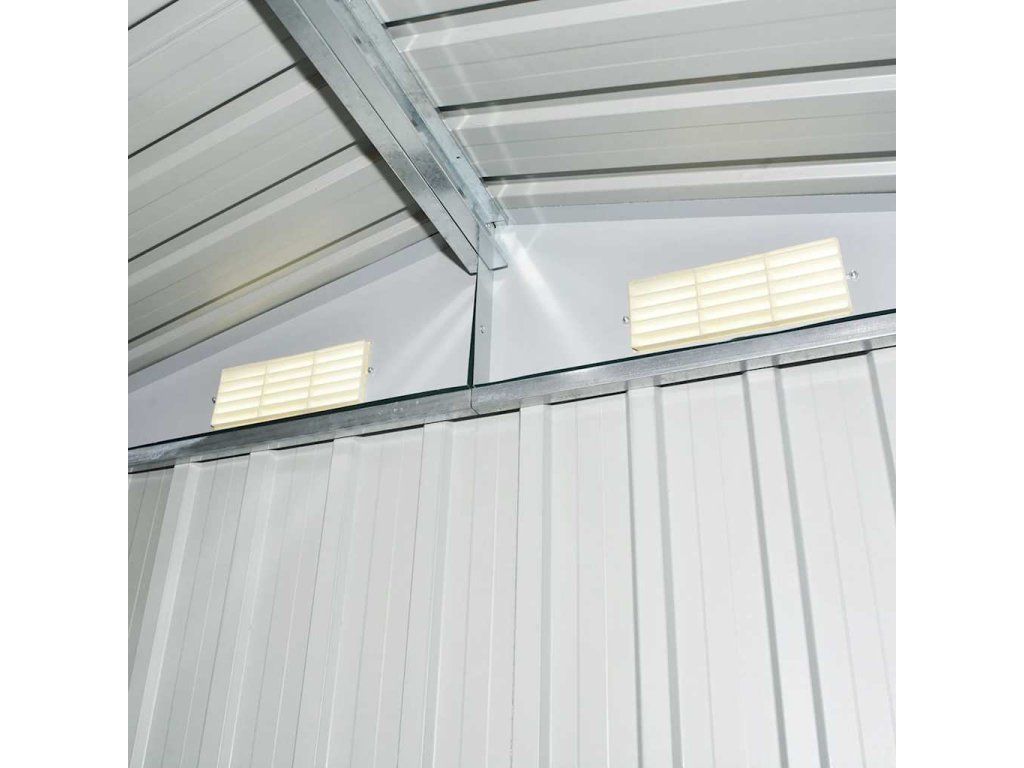 Tento skladovací domček má 4 vetracie otvory, 2 vpredu a 2 vzadu, čo zaisťuje vynikajúce vetranie. Dvojité posuvné dvere vpredu umožňujú jednoduchý vstup a výstup.