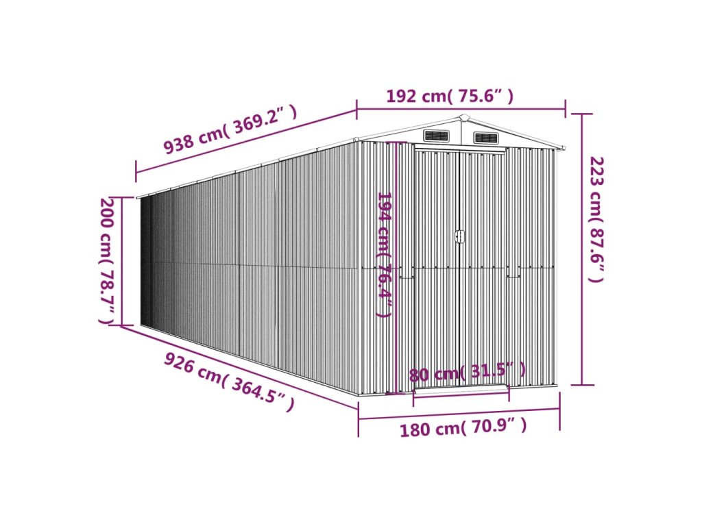Multidom Záhradná kôlňa antracitová 192x938x223 cm pozinkovaná oceľ