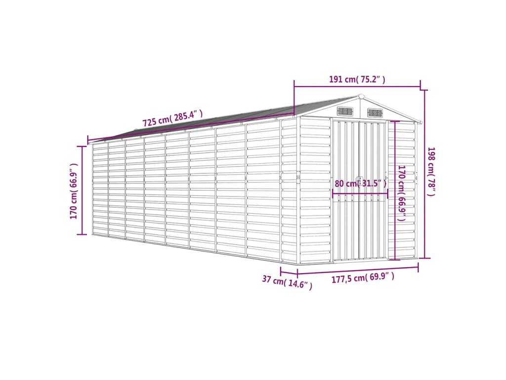 - Dostatok úložného priestoru: Táto kovová kôlňa poskytuje dostatok priestoru na uskladnenie palivového dreva, záhradného náradia, nábytku, vybavenia a ďalších vecí.