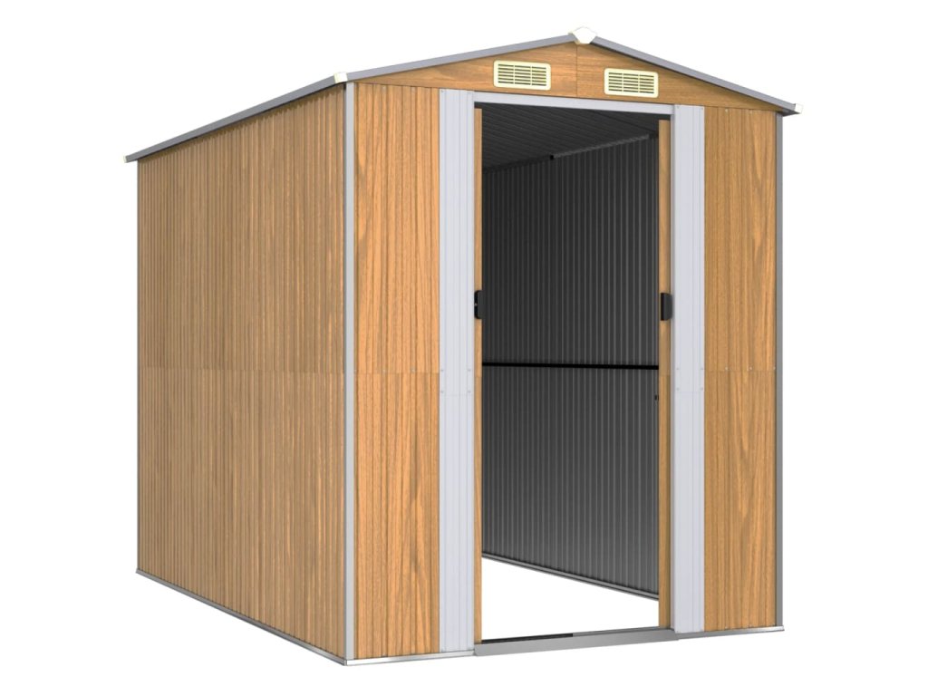 - Odolný materiál: Záhradný domček na náradie je vyrobený z pozinkovanej ocele, ktorá je odolná a nekoroduje, ani ju neovplyvňujú nepriaznivé poveternostné podmienky.