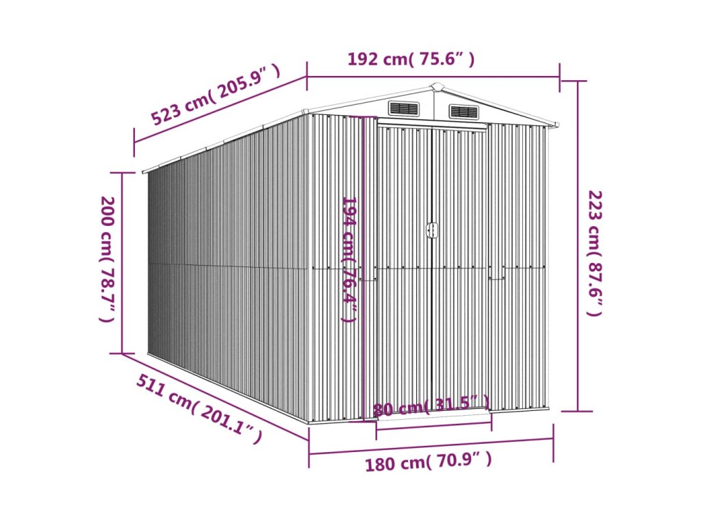 - Priestranný úložný priestor: Prístrešok na náradie je priestranný a vhodný na uloženie širokej škály náradia, záhradného nábytku a vybavenia.