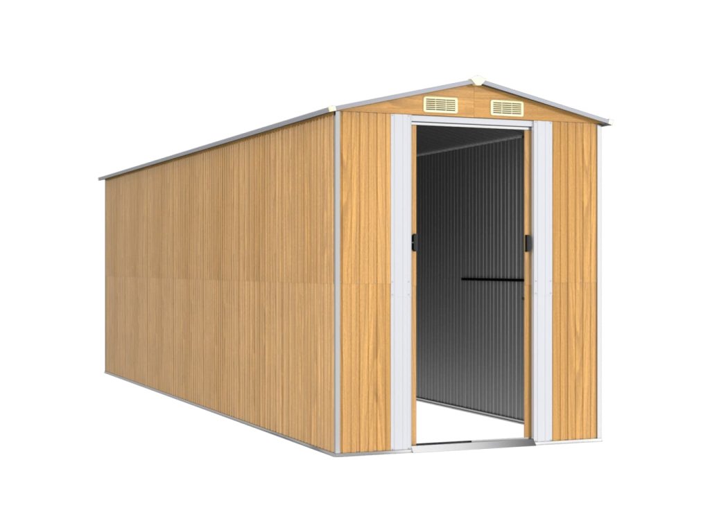 - Odolný materiál: Záhradný domček na náradie je vyrobený z pozinkovanej ocele, ktorá je odolná a nekoroduje, ani ju neovplyvňujú nepriaznivé poveternostné podmienky.