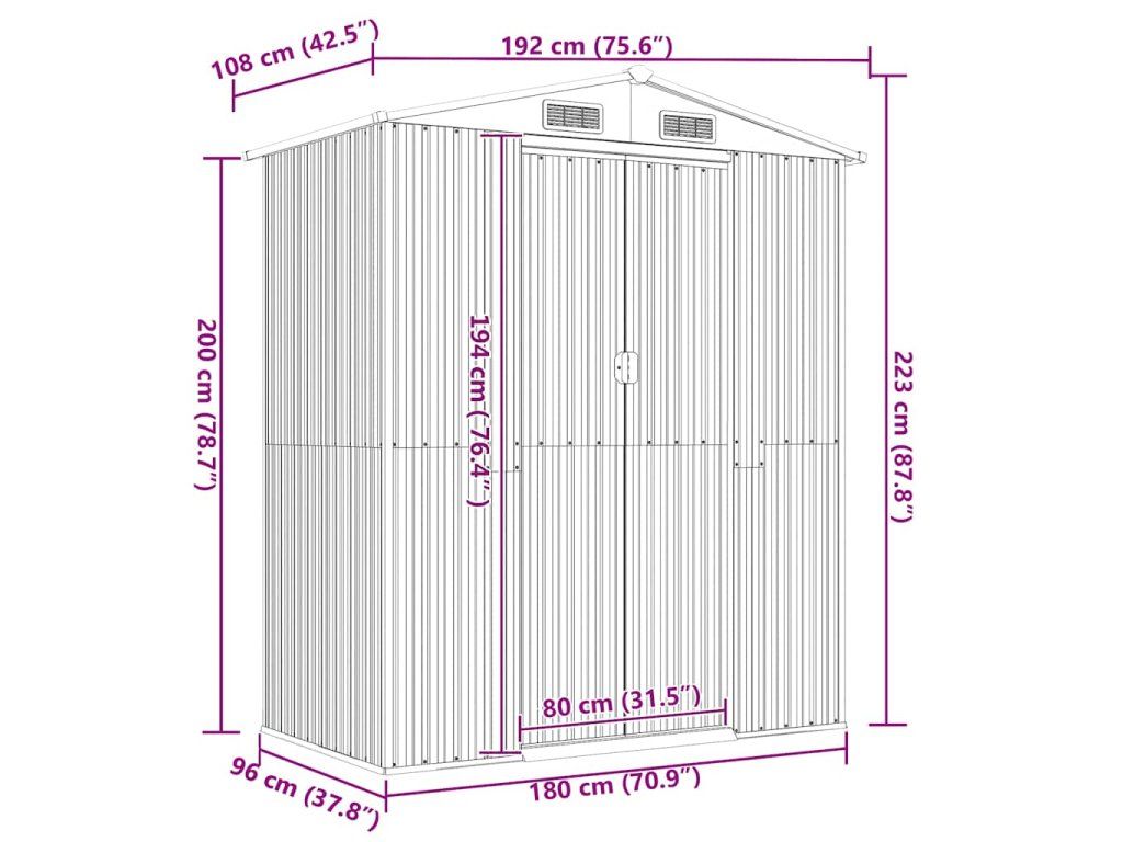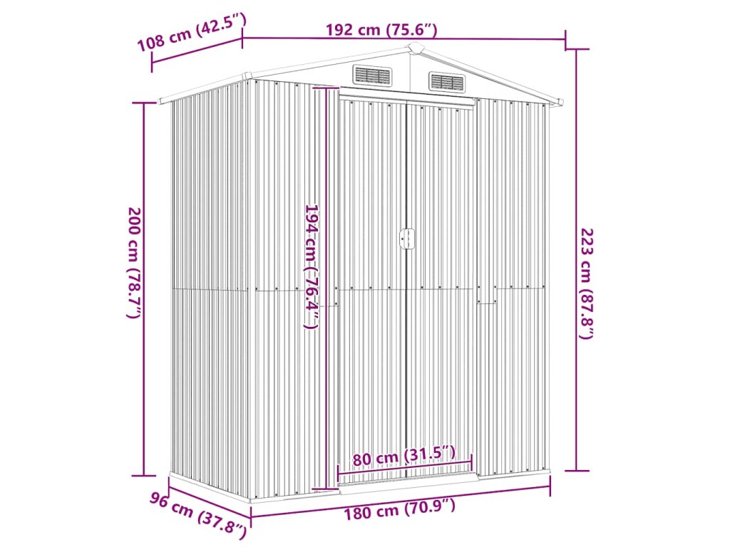 - Odolný materiál: Domček na záhradné náradie je vyrobený z pozinkovanej ocele, ktorá zabraňuje hrdzaveniu a vydrží dlhodobé používanie.