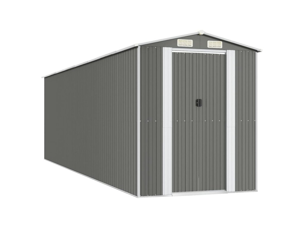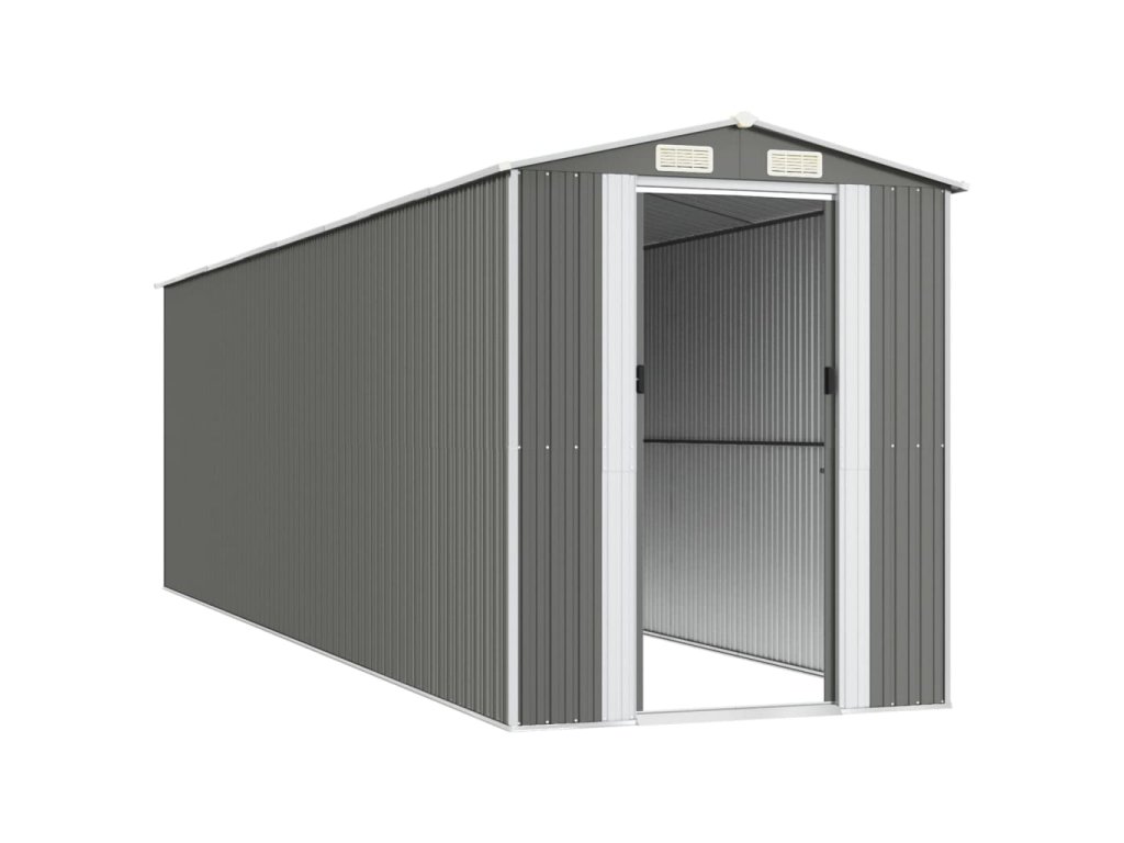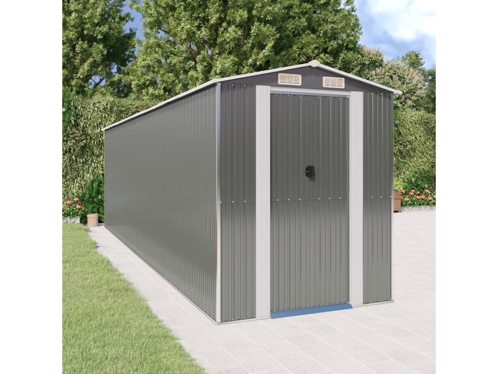 - Odolný materiál: Záhradný domček na náradie je vyrobený z pozinkovanej ocele, ktorá zabraňuje zhrdzaveniu a vydrží dlhodobé používanie.