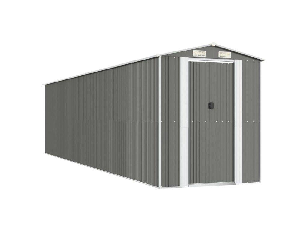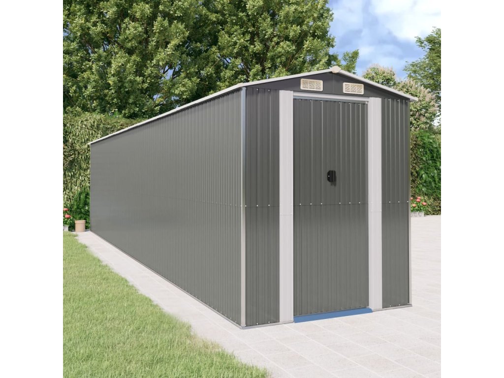 - Odolný materiál: Záhradný domček na náradie je vyrobený z pozinkovanej ocele, ktorá zabraňuje zhrdzaveniu a vydrží dlhodobé používanie.