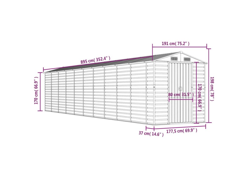 Multidom Záhradná kôlňa hnedá 191x895x198 cm pozinkovaná oceľ