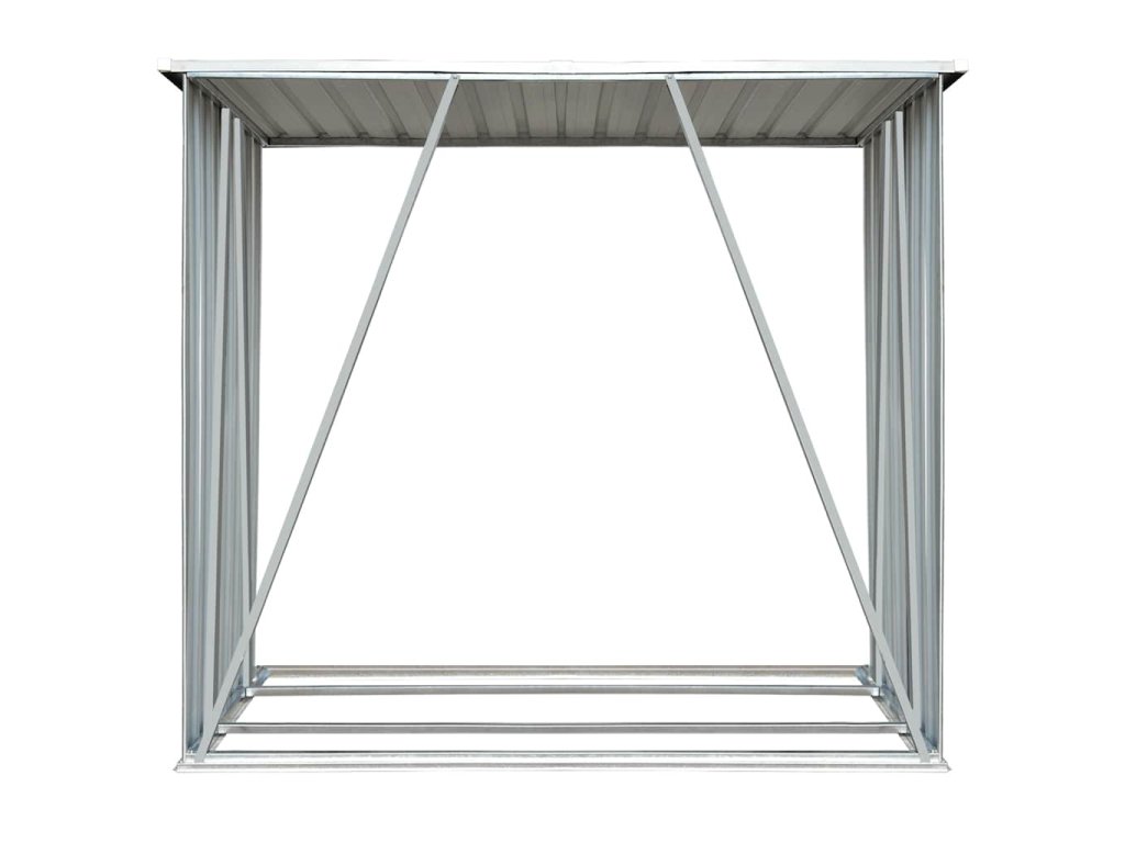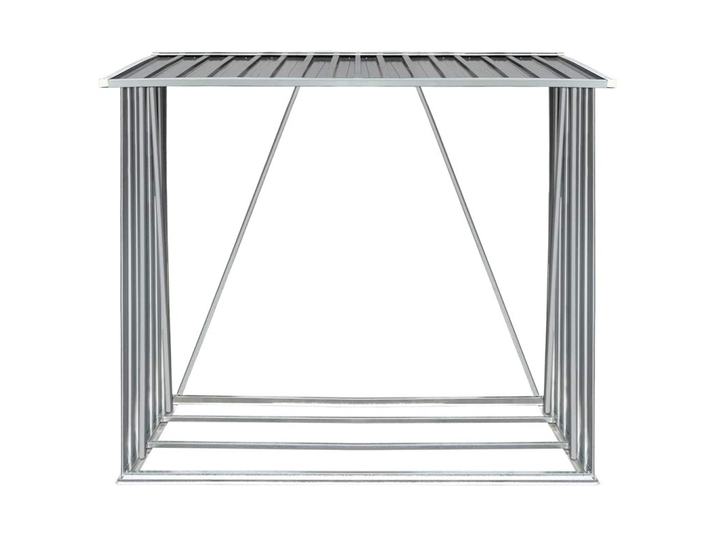 Má stabilnú konštrukciu s oceľovými nosnými tyčami a extra rúrkami na oboch stranách. Keďže je vyrobený z pozinkovanej ocele, sklad na drevo vyžaduje minimálnu údržbu a je veľmi odolný. Tento sklad na drevo obsahuje oceľový podlahový rám pre väčšiu stabilitu a zvýšené podlahové lamely, ktoré udržiavajú drevo vetrané a suché. Dažďová voda bude vďaka šikmej konštrukcii automaticky odtekať zo strechy. Náš sklad na drevo sa ľahko montuje.