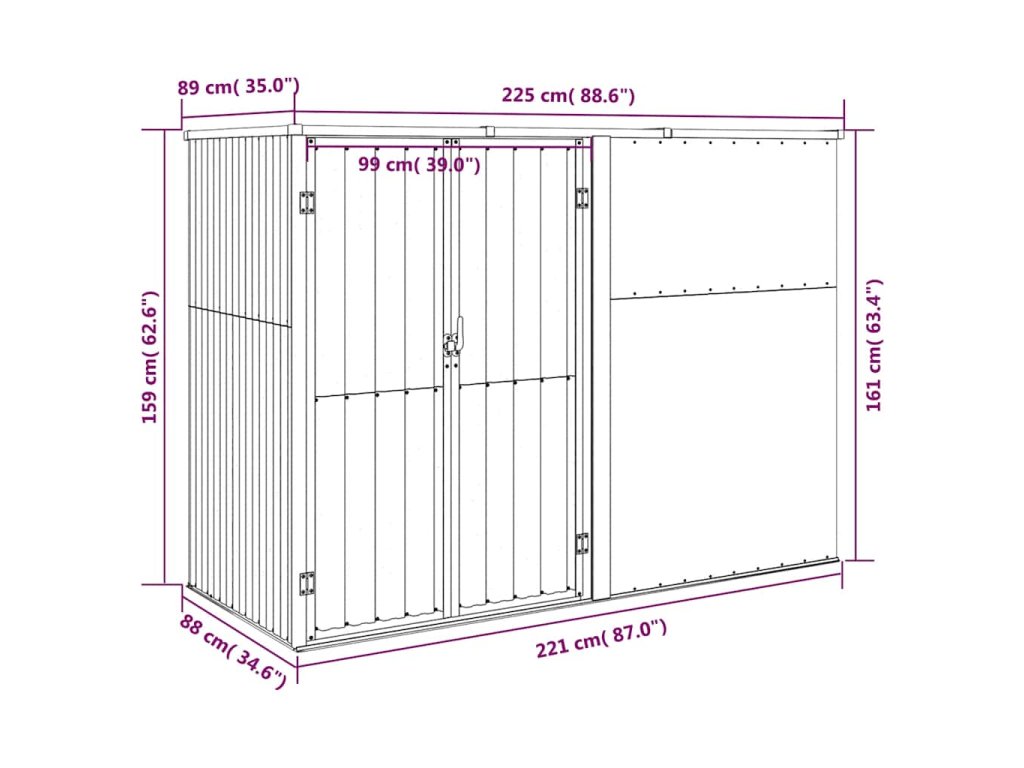 Multidom Záhradná kôlňa na náradie hnedá 225x89x161 cm pozinkovaná oceľ