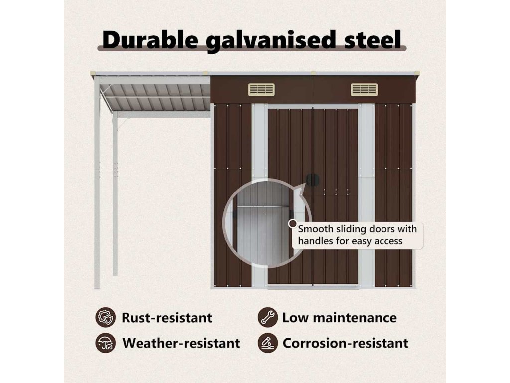 Multidom Záhradná kôlňa predĺžená strecha hnedá 277x107x181 cm oceľ