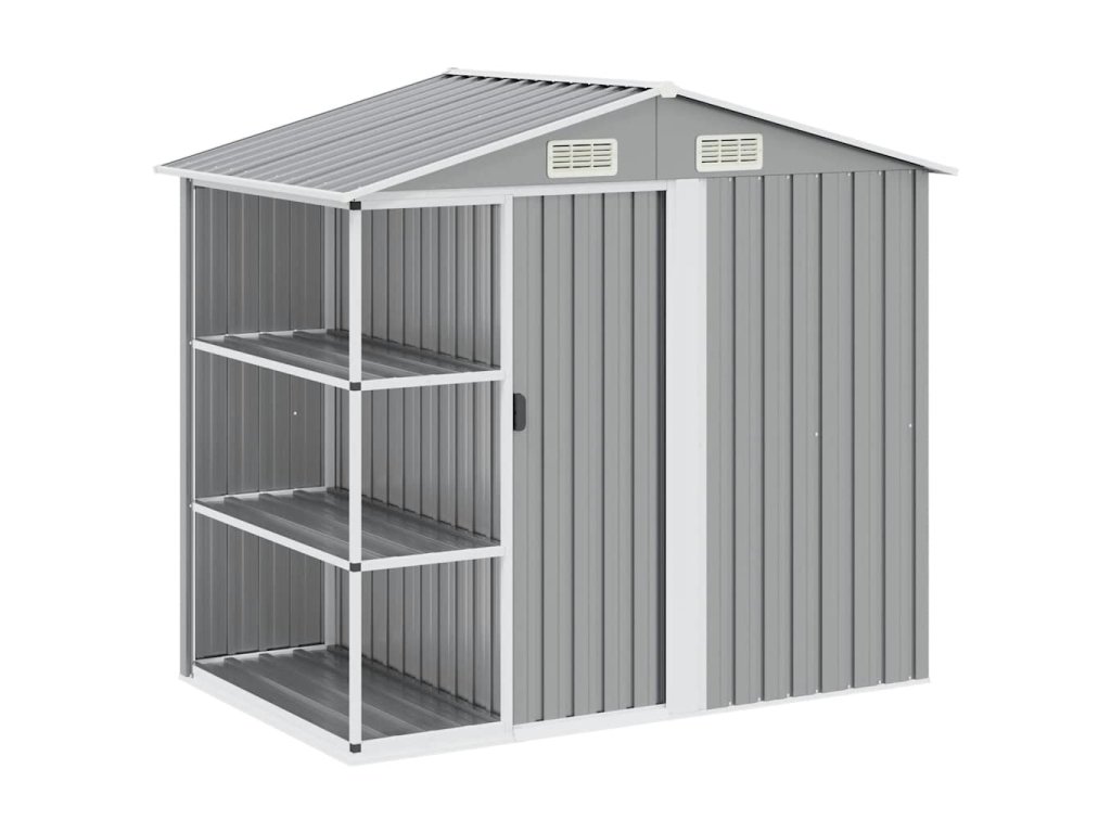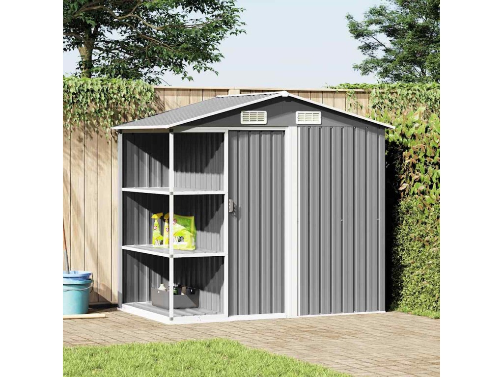 Multidom Záhradná kôlňa s regálom sivá 205x130x183 cm železná