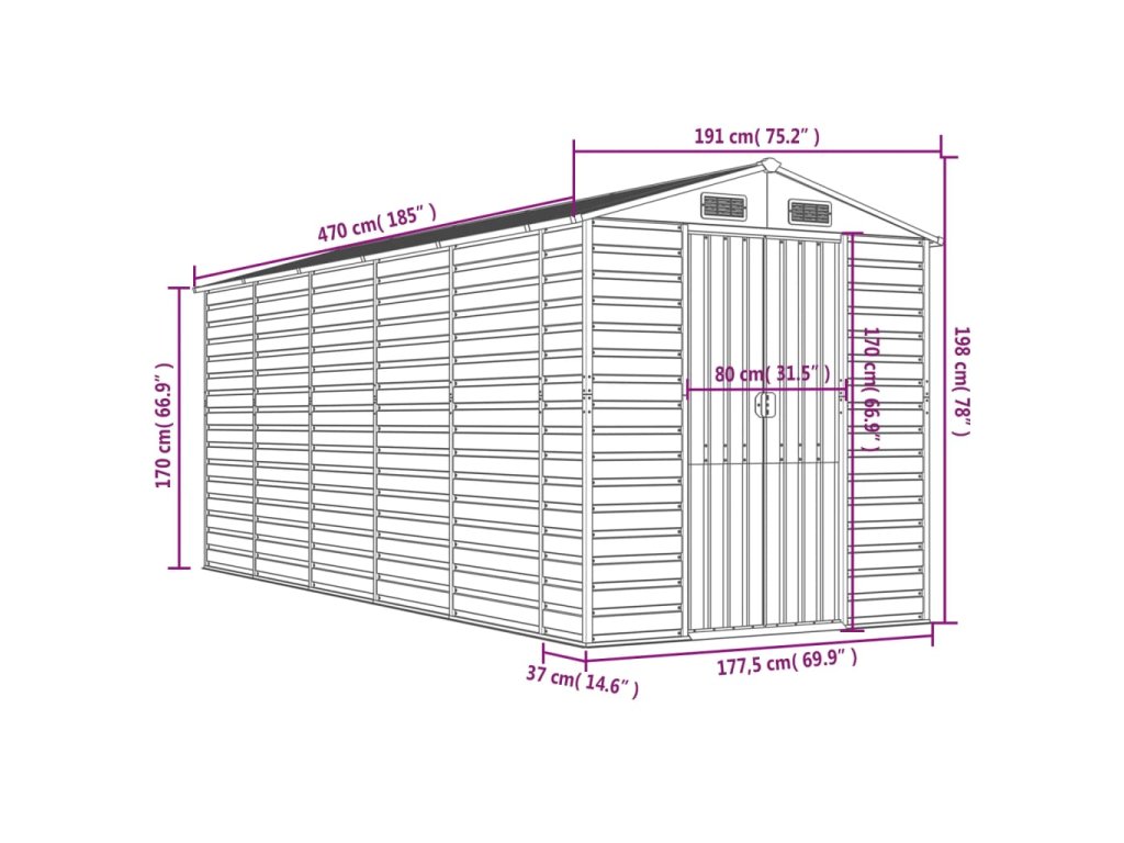 - Dostatok úložného priestoru: Táto kovová kôlňa poskytuje dostatok priestoru na uskladnenie palivového dreva, záhradného náradia, nábytku, vybavenia a ďalších vecí.