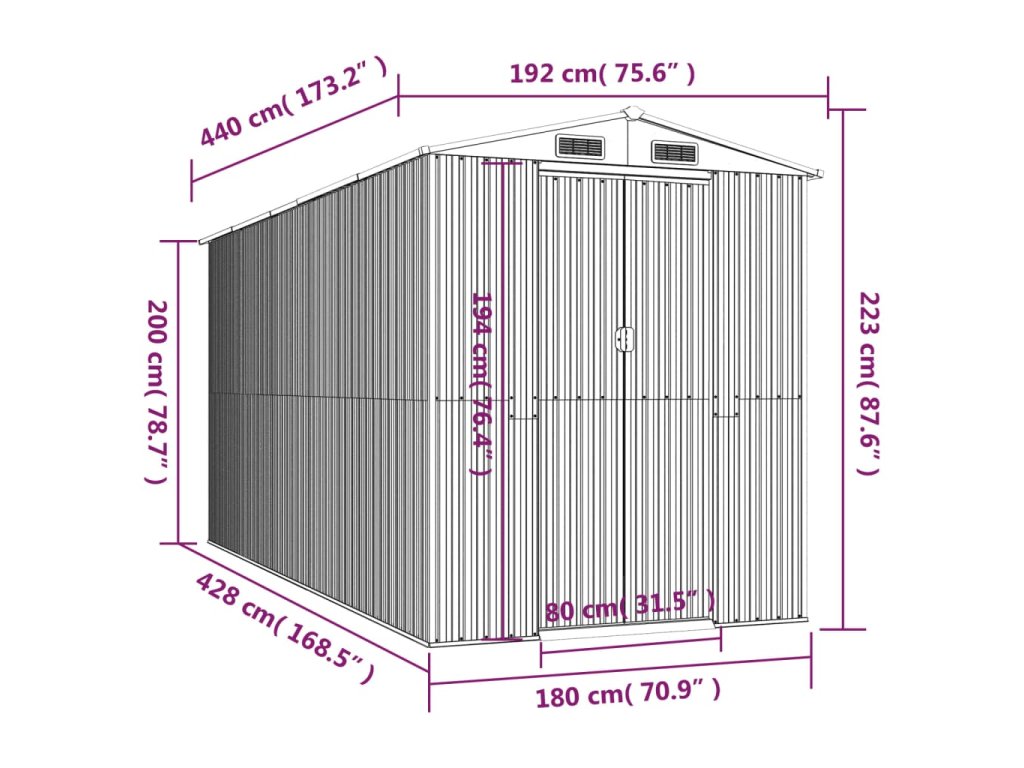 - Odolný materiál: Záhradný domček na náradie je vyrobený z pozinkovanej ocele, ktorá zabraňuje zhrdzaveniu a vydrží dlhodobé používanie.