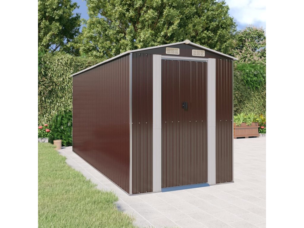 Multidom Záhradná kôlňa tmavohnedá 192x440x223 cm pozinkovaná oceľ