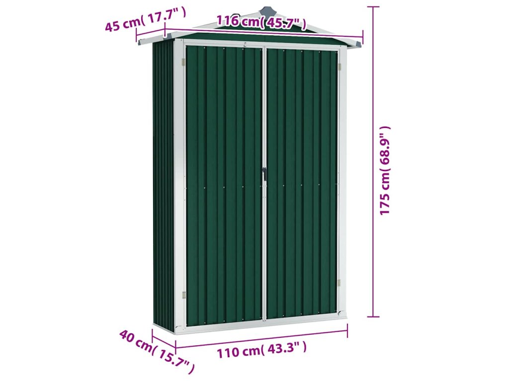 Multidom Záhradná kôlňa zelená 116x45x175 cm pozinkovaná oceľ
