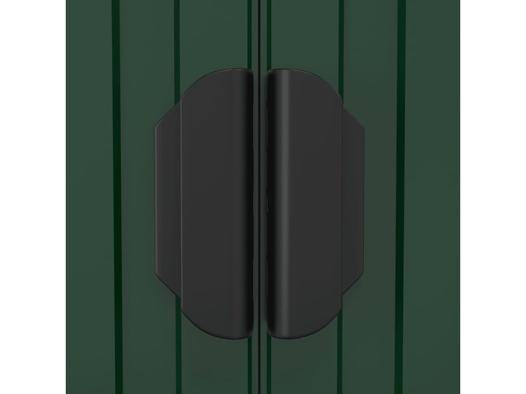 - Odolný materiál: Záhradný domček na náradie je vyrobený z pozinkovanej ocele, ktorá zabraňuje zhrdzaveniu a vydrží dlhodobé používanie.