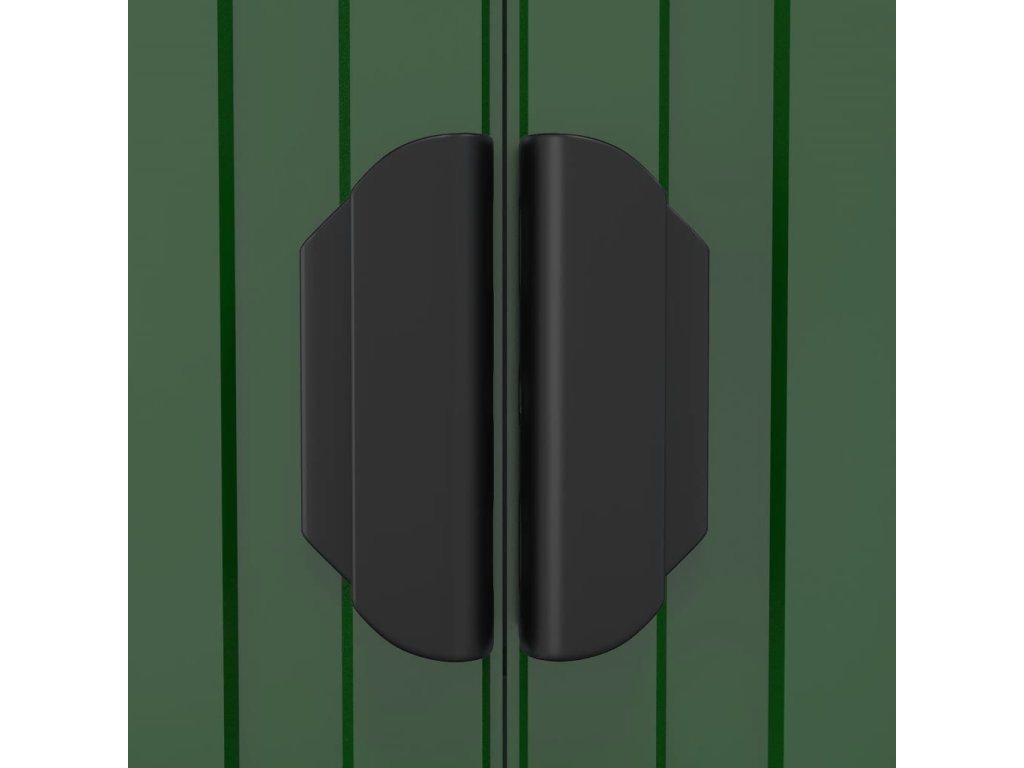 - Odolný materiál: Záhradný domček na náradie je vyrobený z pozinkovanej ocele, ktorá je odolná a nekoroduje, ani ju neovplyvňujú nepriaznivé poveternostné podmienky.