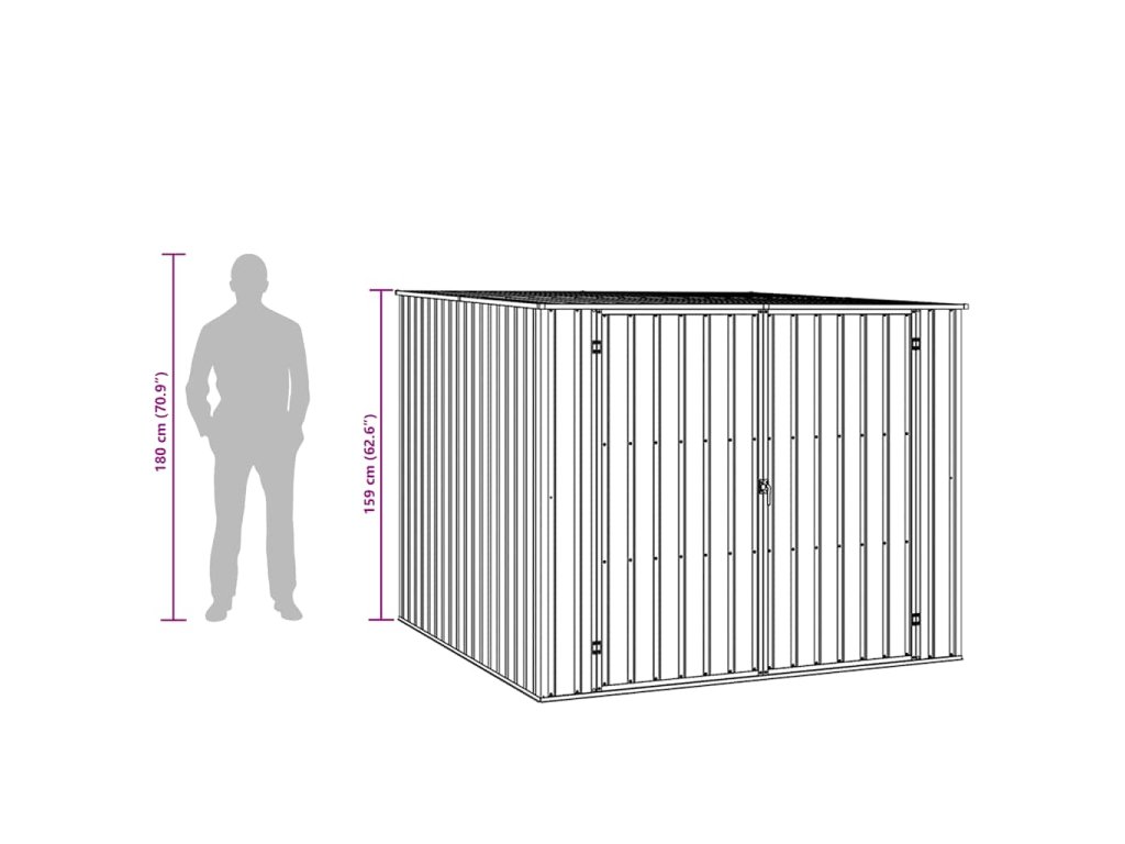 Tento vonkajší úložný domček je vyrobený z pozinkovanej ocele, vyžaduje minimálnu údržbu a je veľmi odolný. Dvojité otváracie dvere v prednej časti umožňujú jednoduchý vstup a výstup. Okrem toho dažďová voda automaticky odteká zo strechy vďaka šikmej konštrukcii.