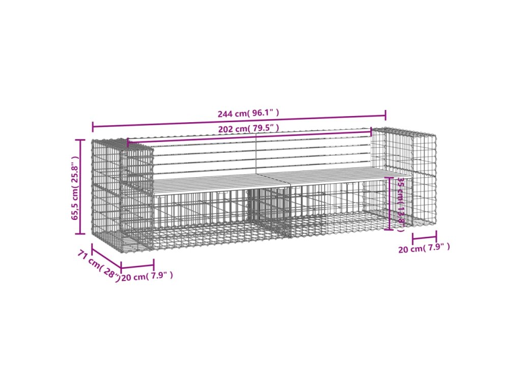 Multidom Záhradná lavica gabiónový dizajn 244x71x65,5 cm masívny douglas