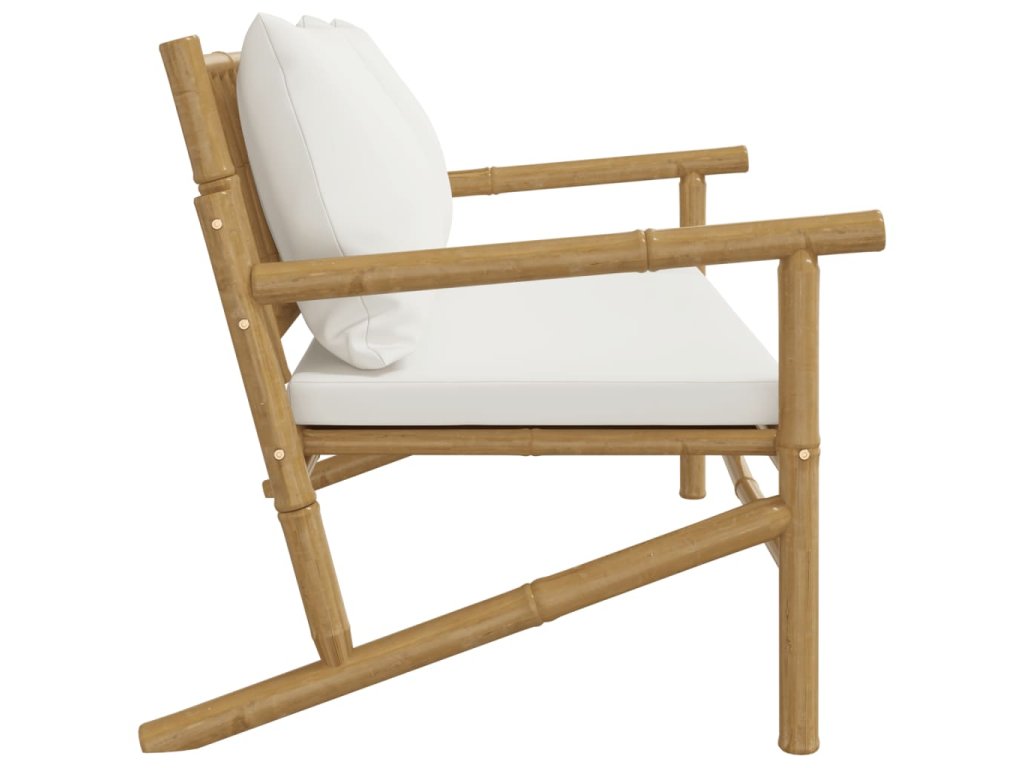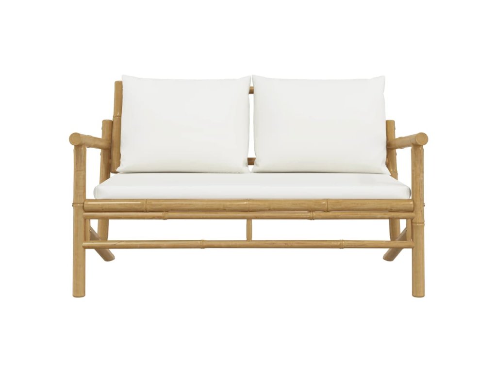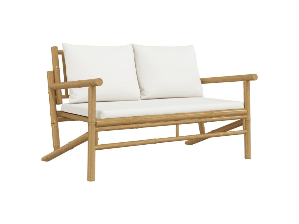 Multidom Záhradná lavica s krémovo-bielymi vankúšmi bambus