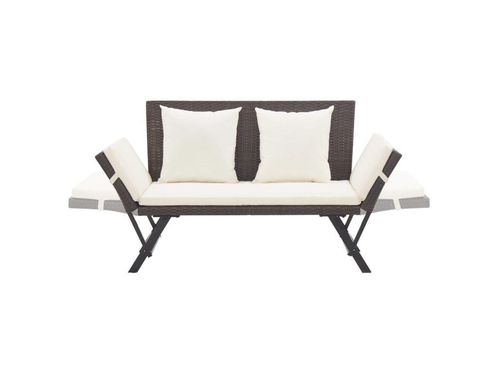 Táto záhradná lavica vyrobená PE ratanu z odolného voči poveternostným vplyvom je ľahko čistiteľná, odolná a vhodná na každodenné použitie. Vyznačuje sa pevným oceľovým rámom s práškovým povrchom, vďaka ktorému je táto lavica veľmi stabilná a odolná. Vďaka nastaviteľným stranám sa dá ľahko a rýchlo premeniť z lavice na dennú posteľ a späť. Silne polstrovaný vankúš poskytne maximálny komfort a dodatočnú oporu. Vďaka zipsu je poťah vankúša odnímateľný pre ľahké pranie.