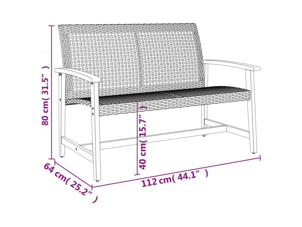 - Materiál: PE ratan, masívne akáciové drevo, kov