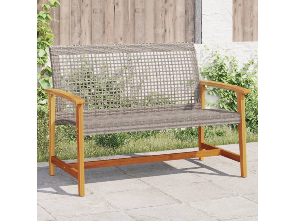 Multidom Záhradná lavica sivá 112 cm polyratan a akáciové drevo