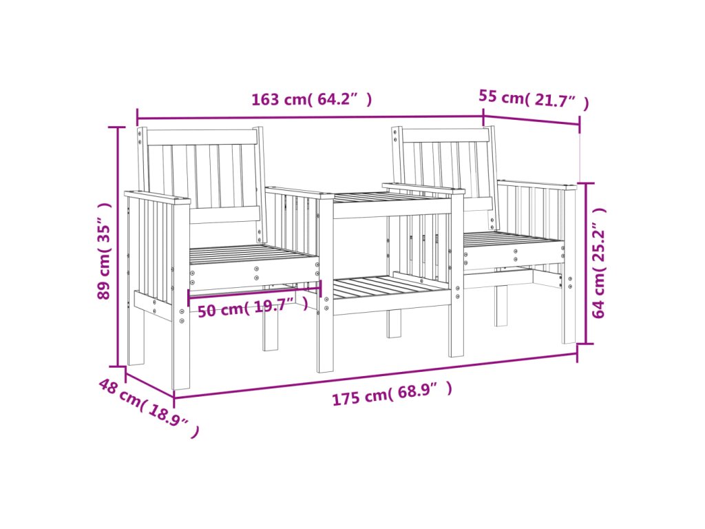 - Masívne borovicové drevo: Záhradná lavica so stolíkom je vyrobená z masívneho borovicového dreva pre pevnosť a stabilitu. Borovicový masív je krásny prírodný materiál. Borovicové drevo má rovnú štruktúru a uzly dodávajú materiálu jeho typický rustikálny vzhľad.