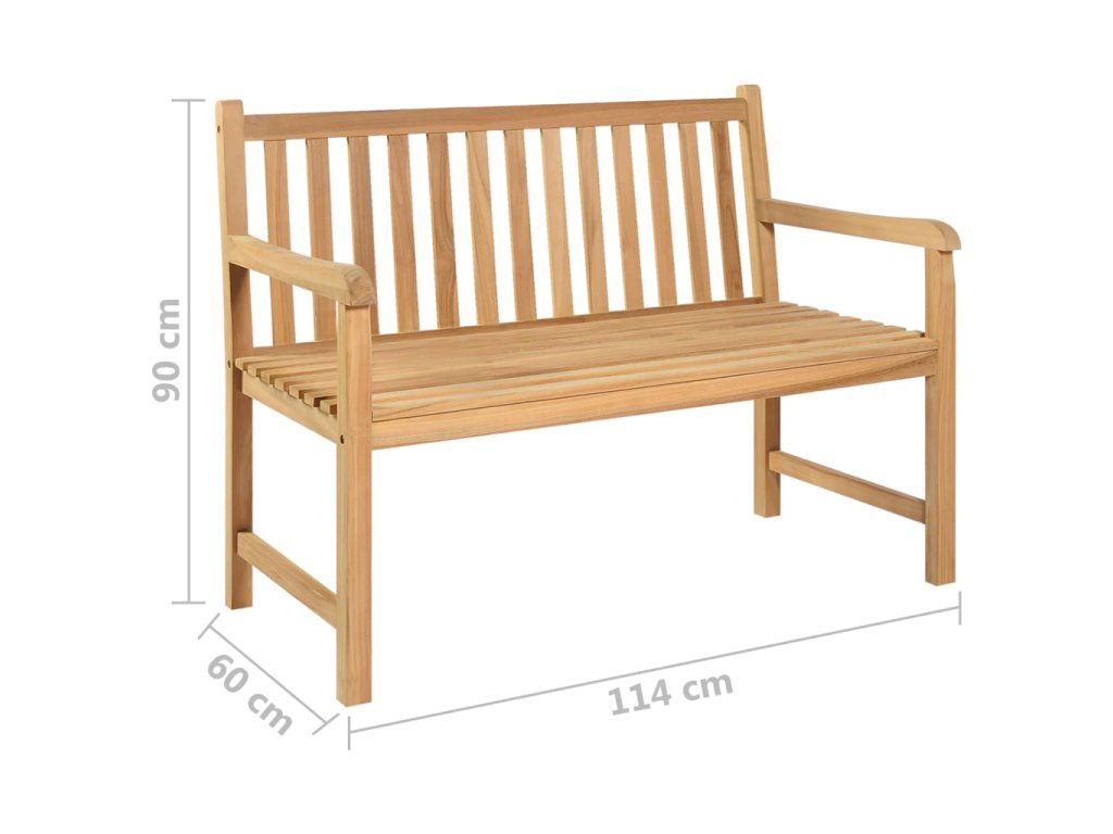 Tíkový nábytok je vyhotovený z mimoriadne trvácneho tvrdého tíkového dreva, ktoré bolo umelo vysušené v sušiarni a jeho povrch bol následne jemne obrúsený, aby získal hladký vzhľad. Tíkové drevo sa vyznačuje výnimočnou pevnosťou a odolnosťou voči poveternostným vplyvom, a tak predstavuje jeden z najvhodnejších materiálov na výrobu záhradného nábytku spomedzi všetkých ostatných druhov dreva. Tíkové drevo je ideálnou voľbou, ak si chcete kúpiť kus záhradného nábytku s dlhou životnosťou. Vonkajšia lavica má krásnu povrchovú úpravu, ktorá dodáva drevu teplú farbu. Vyznačuje sa rafinovaným vzhľadom, ktorý okamžite zapadne do akejkoľvek záhrady alebo na terasu.