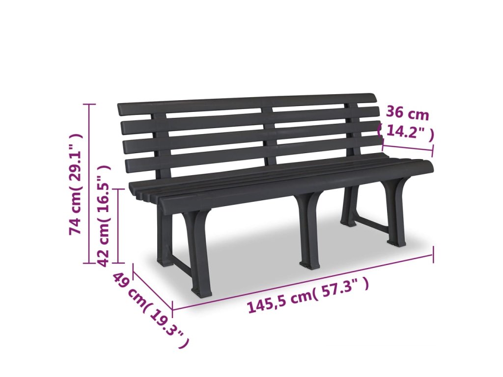 Multidom Záhradná lavička 145,5 cm, plast, antracitová