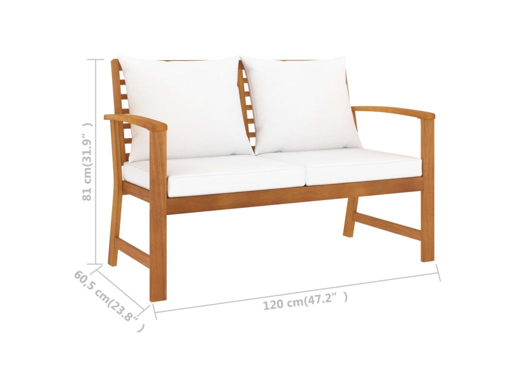 Multidom Záhradná lavička s krémovými vankúšmi 120 cm akáciový masív