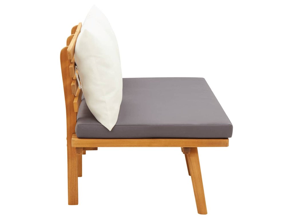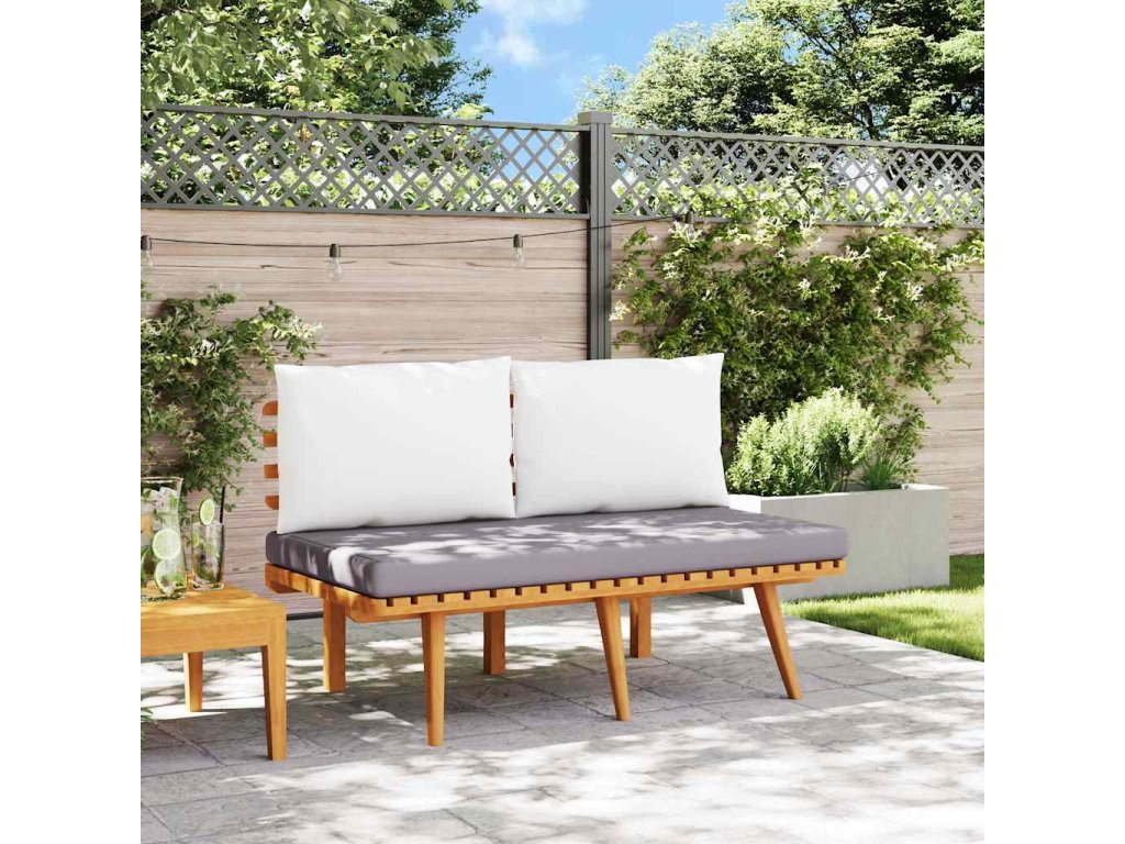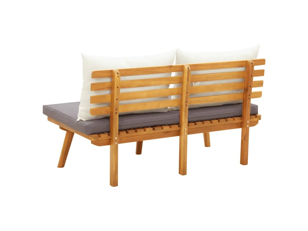 Lavička bola vytvorená z masívneho akáciového dreva, vďaka čomu je pevná, trvácna a vhodná na vonkajšie použitie. Pevné čalúnené sedadlo a zadné vankúše zvyšujú pohodlie počas sedenia. Okrem toho sa dá lavička jednoducho zostaviť.