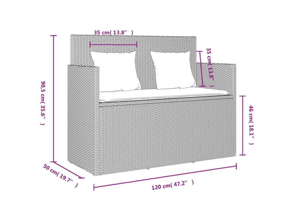 Táto záhradná lavička vám poskytne miesto na sedenie vo vonkajších priestoroch a zároveň poslúži aj na prehľadné odkladanie podložiek na vonkajší nábytok, záhradných potrieb, uterákov k bazénu či ďalších vecí, ktoré budete mať poruke.