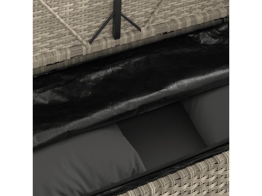 - Úložná funkcia s vodeodolnou taškou: Záhradný nábytok má úložný priestor pod sedadlom, doplnený o vodeodolnú tašku na uloženie vankúšov, hračiek a iných predmetov. Vnútorné vrecko sa dá bezpečne pripevniť k vonkajšiemu nábytku pomocou háčikov a slučiek na zvýšenie stability.