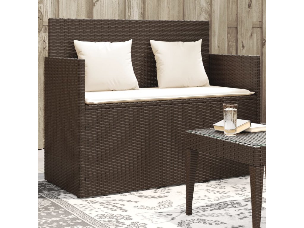 Multidom Záhradná lavička s podložkami hnedá polyratan