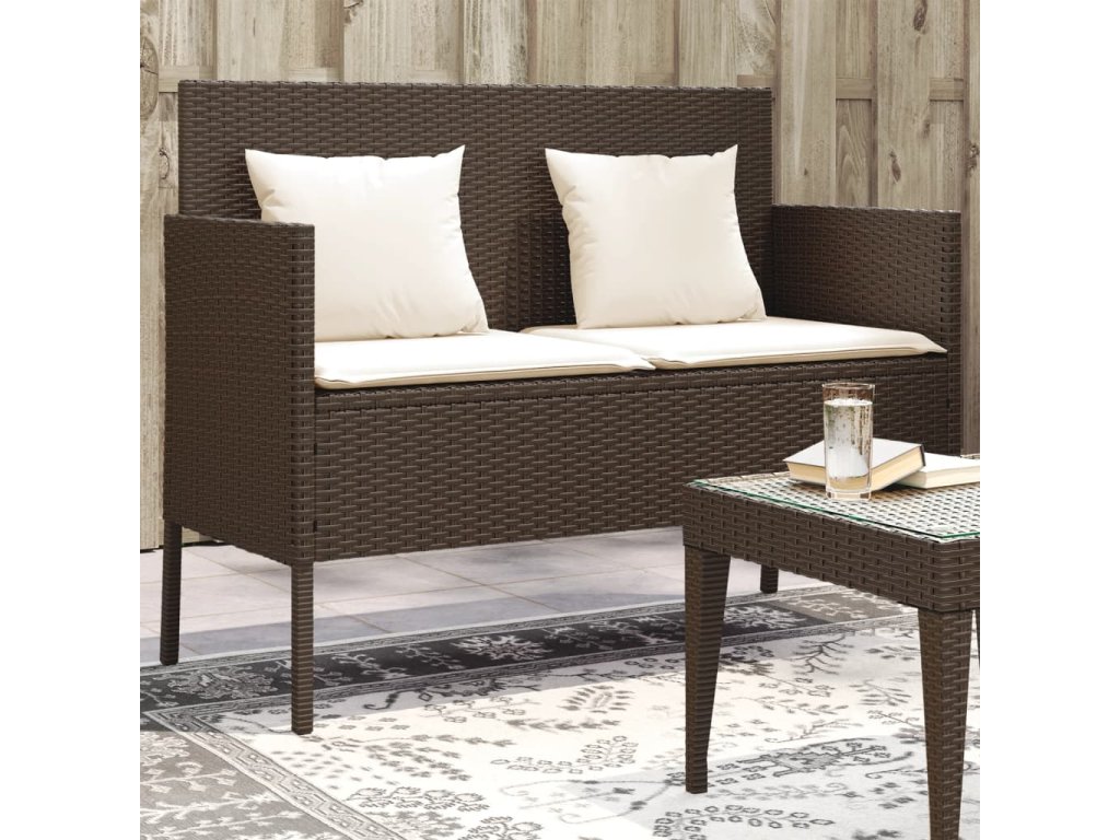 Multidom Záhradná lavička s podložkami hnedá polyratan