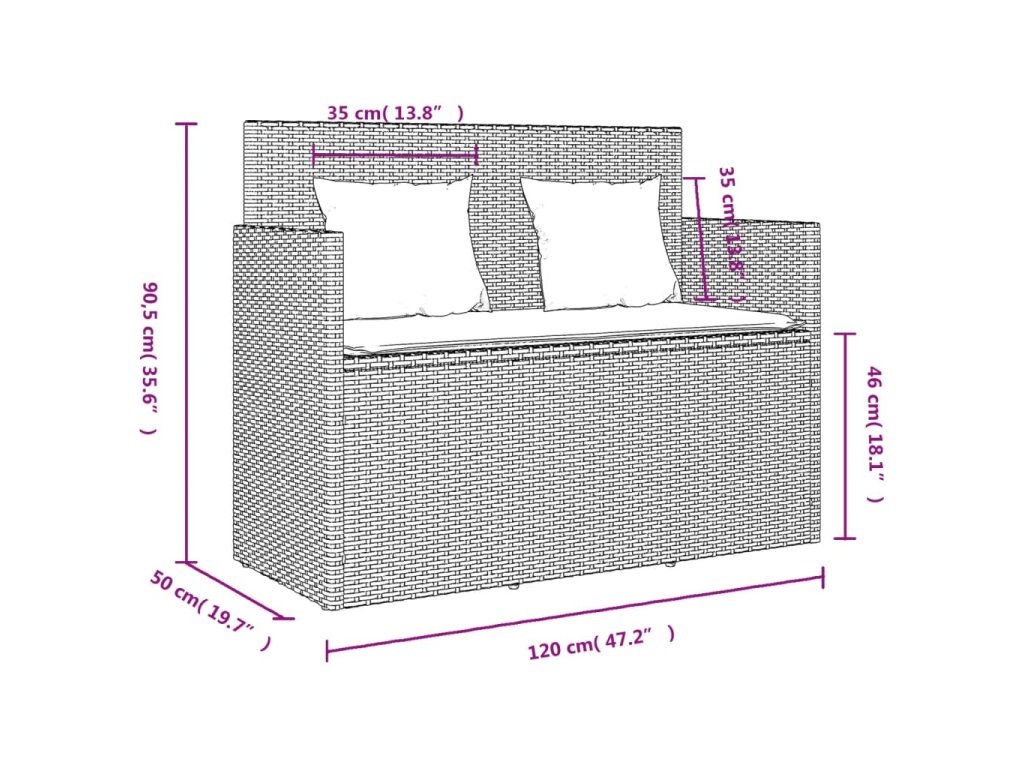 Táto záhradná lavička vám poskytne miesto na sedenie vo vonkajších priestoroch a zároveň poslúži aj na prehľadné odkladanie podložiek na vonkajší nábytok, záhradných potrieb, uterákov k bazénu či ďalších vecí, ktoré budete mať poruke.
