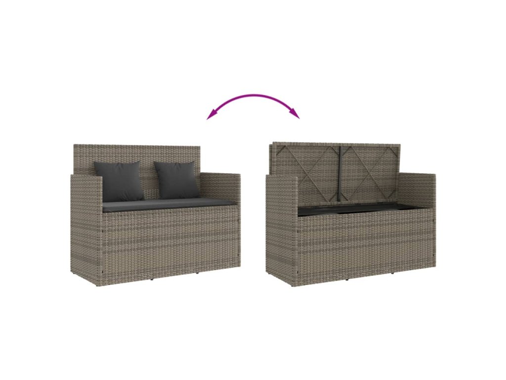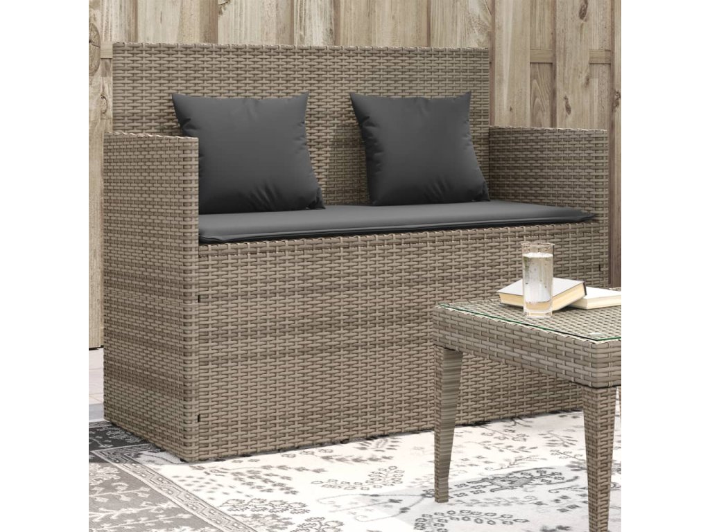 Multidom Záhradná lavička s podložkami sivá polyratan