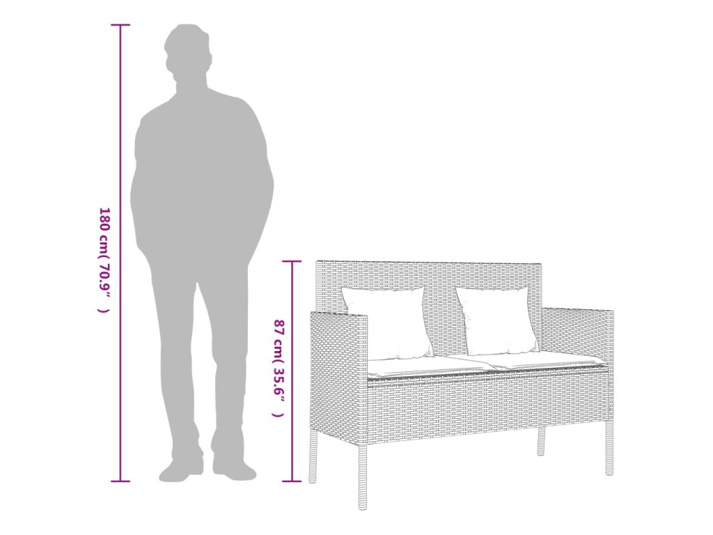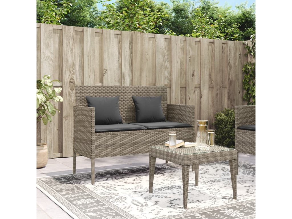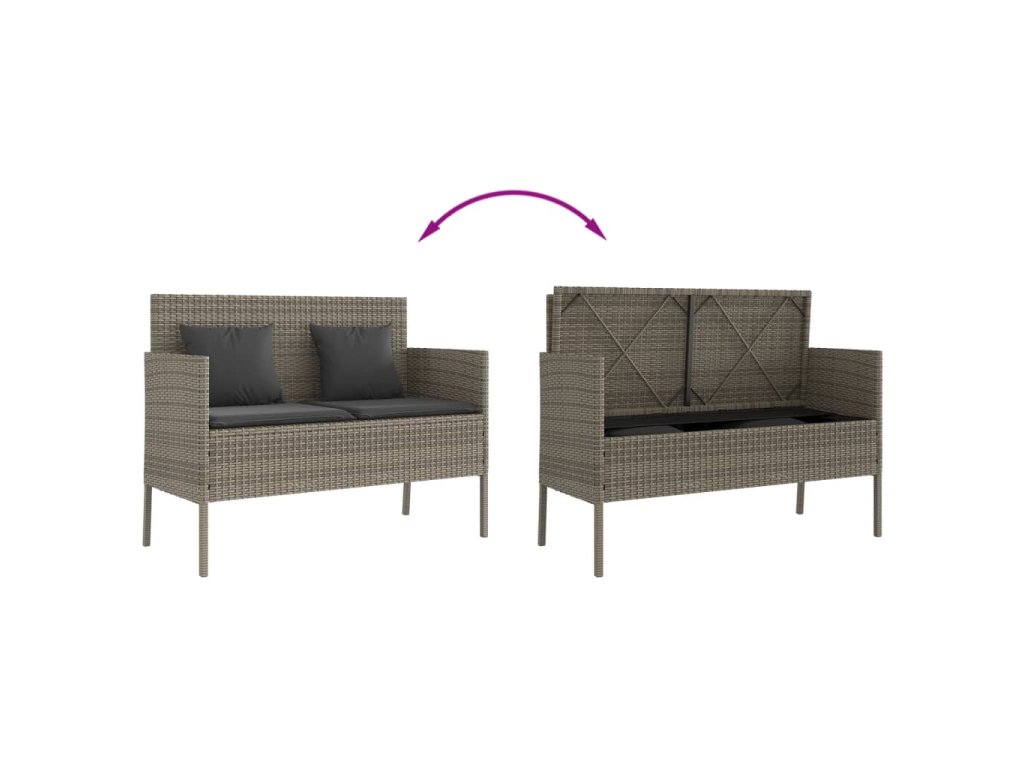 Multidom Záhradná lavička s podložkami sivá polyratan