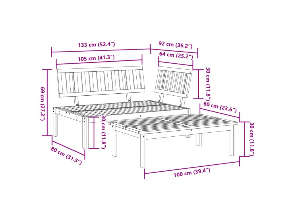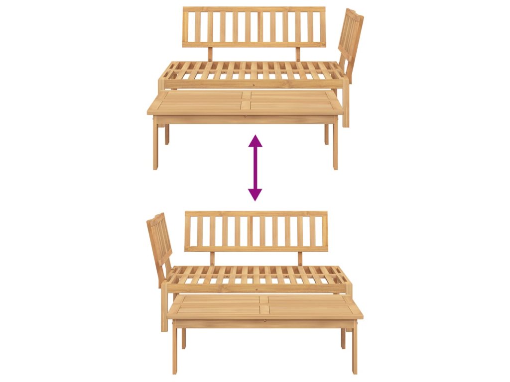 - Trvácny materiál: Masívne akáciové drevo je krásny prírodný materiál. Akáciové drevo je drevo tropického listnatého stromu, ktoré je husté, pevné a trvácne. Vďaka olejovej povrchovej úprave je súprava nábytku vhodná na vonkajšie použitie.