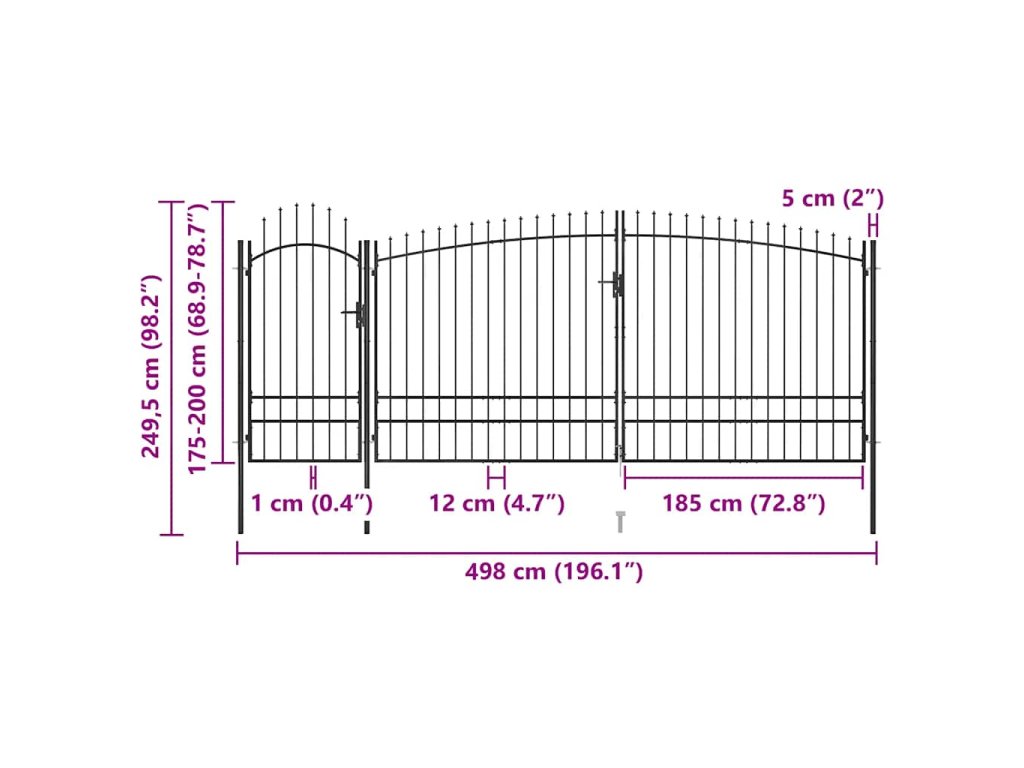 Multidom Záhradná plotová brána s hrotmi 5x2,45 m, čierna
