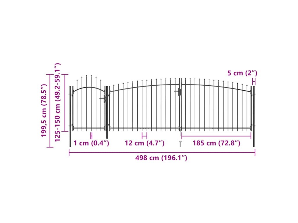Multidom Záhradná plotová brána s hrotmi 5x2 m, čierna