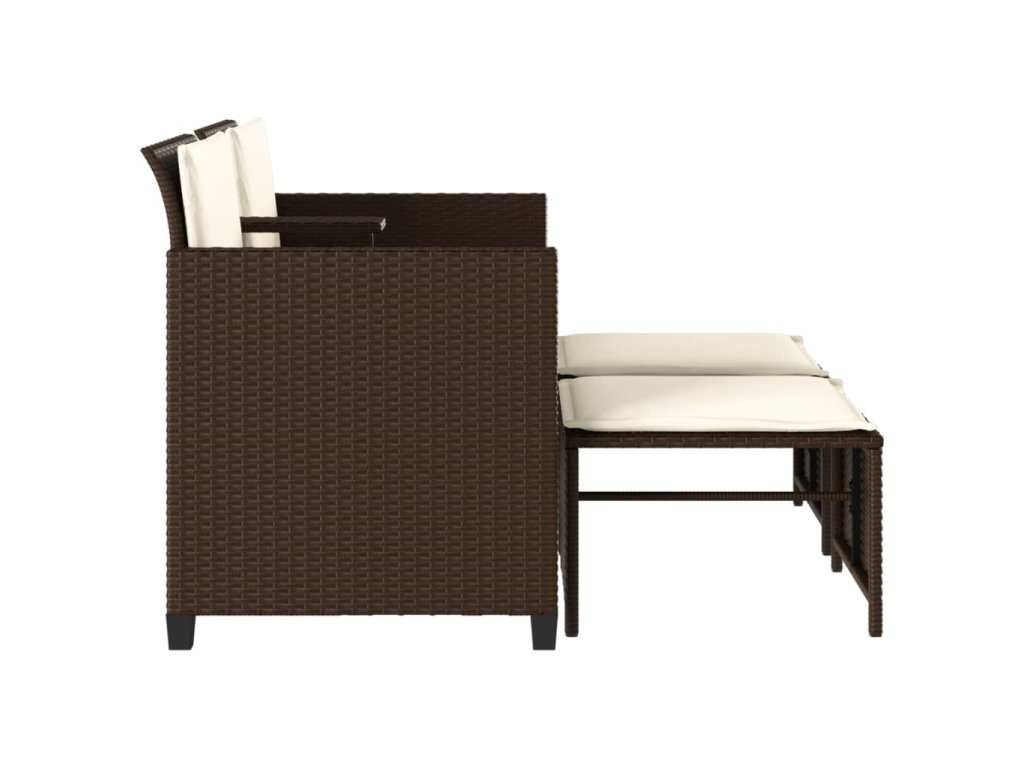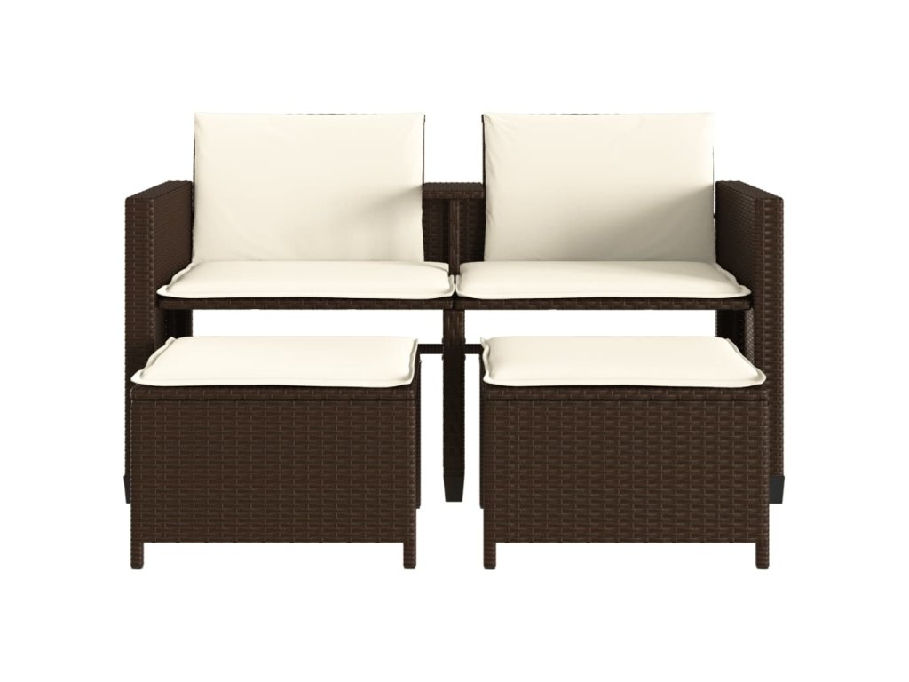 Multidom Záhradná pohovka, 2-miestna, stôl a taburetky, hnedá, polyratan