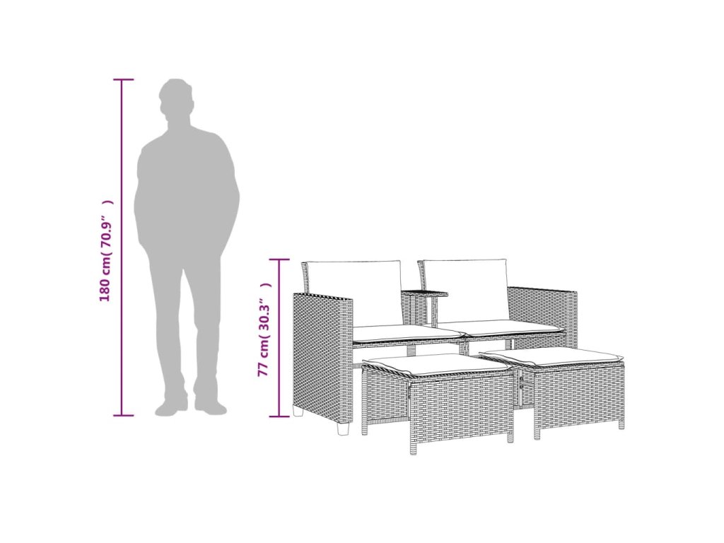 - Pohodlný centrálny stôl: Tento vonkajší nábytok je vybavený integrovaným centrálnym stolíkom, ktorý poskytuje praktické miesto na odkladanie vašich potrieb na dosah.