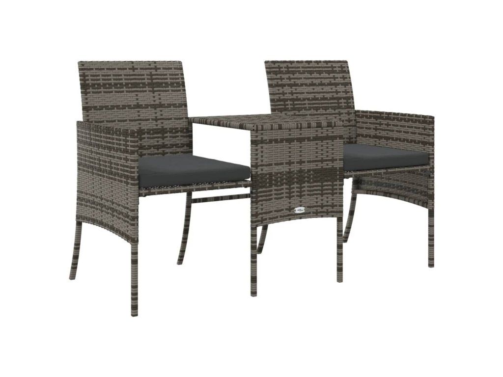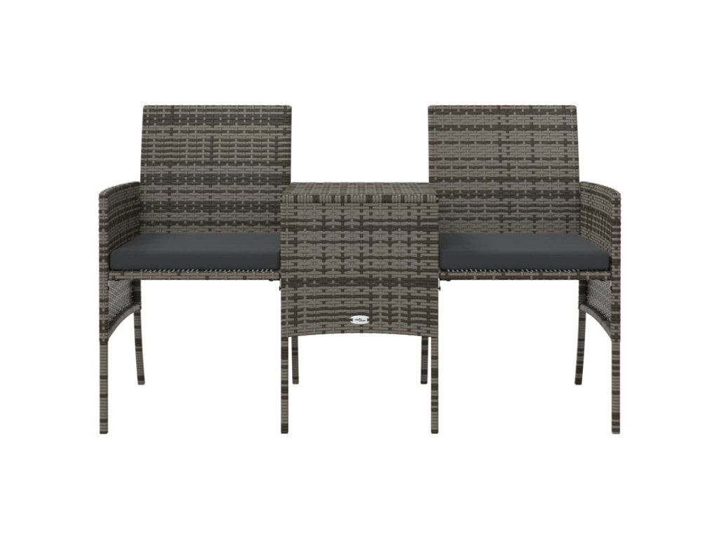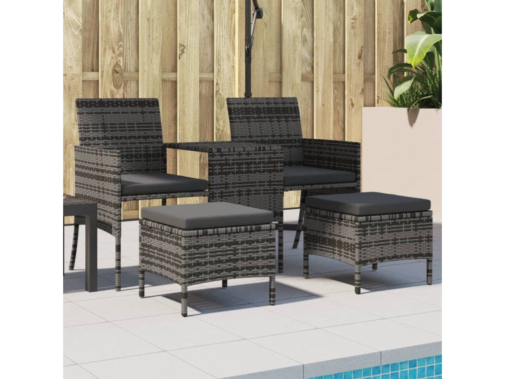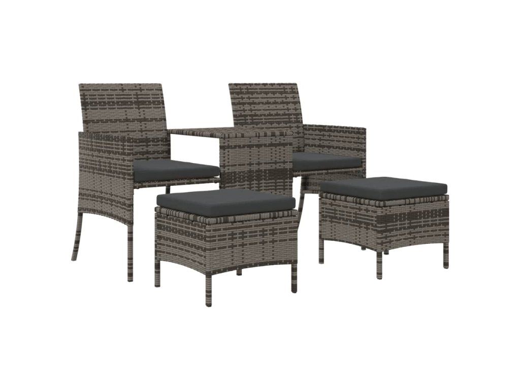 Multidom Záhradná pohovka, 2-miestna, stôl a taburetky, sivá, polyratan