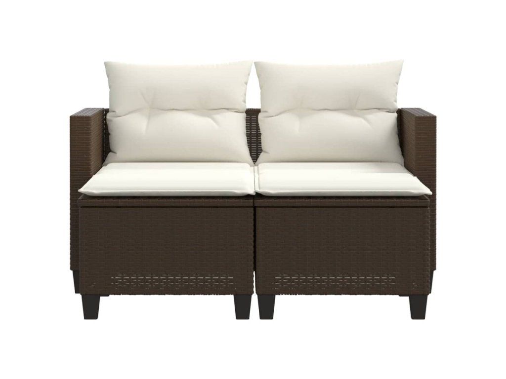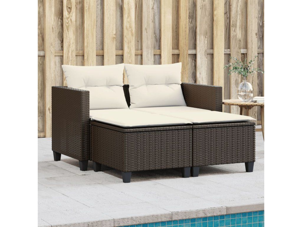 Multidom Záhradná pohovka, 2-miestna s taburetkami, hnedá, polyratan
